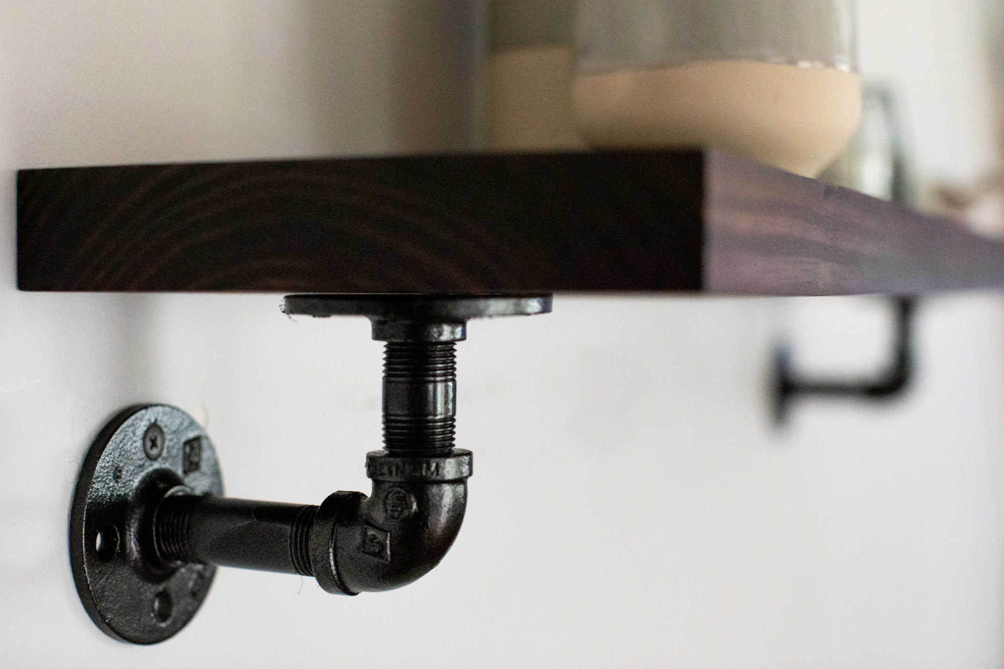 This durable solid wood and steel "L" pipe bracket shelf design is constructed from locally sourced pine wood and industrial grade pipe. Add character to your living room, kitchen, bathroom or even garage! The included fittings are industrial grade and are cleaned and painted prior to shipping. This design combines the modern look of clean edge wood, with the industrial look of the steel pipes.