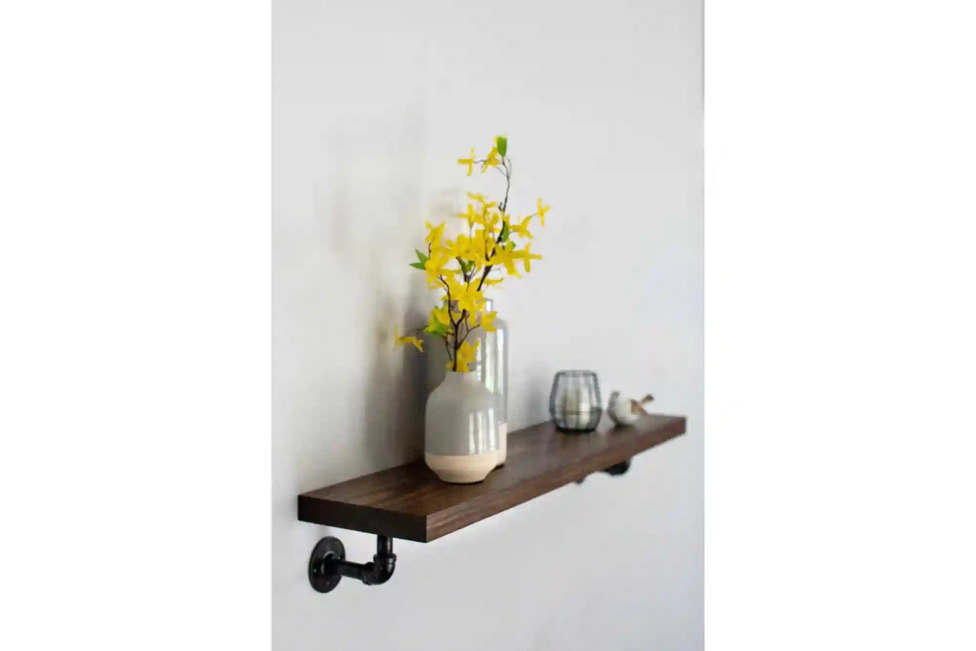 This durable design is constructed from locally sourced pine wood. Please note that these shelves DO NOT INCLUDE ANY MOUNTING BRACKETS OR HARDWARE. This is the perfect option for you to utilize that amazing Flea Market bracket find, or other fabulous brackets you've found on Etsy. All edges will be smooth finished, but some pine wood characteristics will still be present such as knots, uneven grain patterns, small cracks, etc. We personally believe that this adds character to the shelves, but understand it may not fit the aesthetic you're looking for. Please keep this in mind as you are making your purchase.