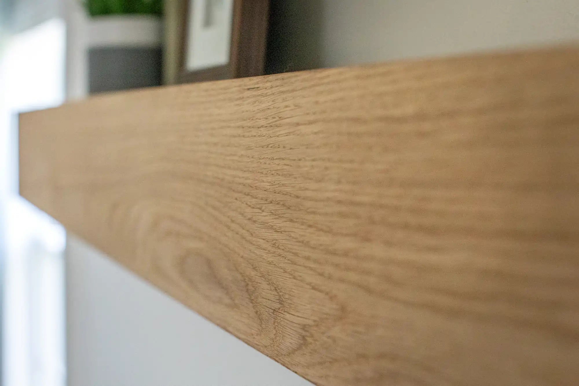 White Oak Floating Mantel, built to last, custom cut to your exact dimensions.