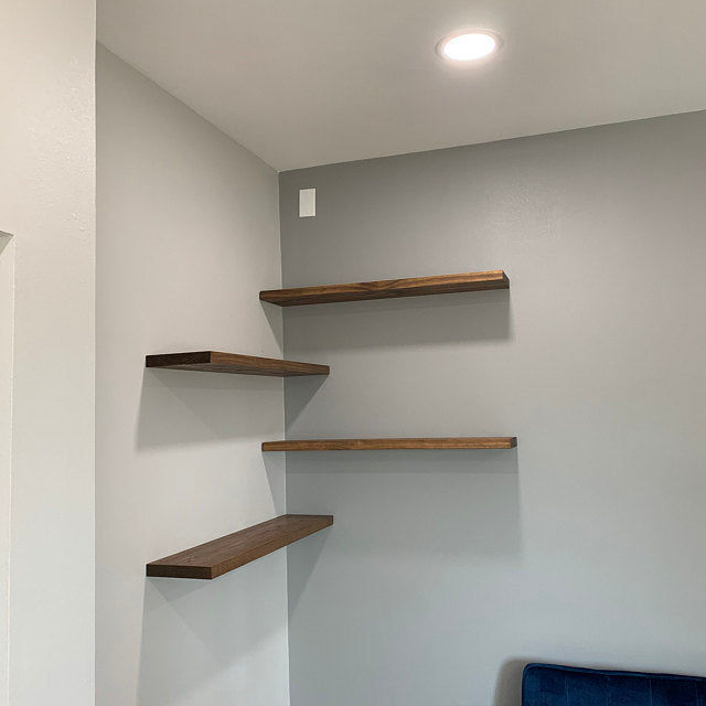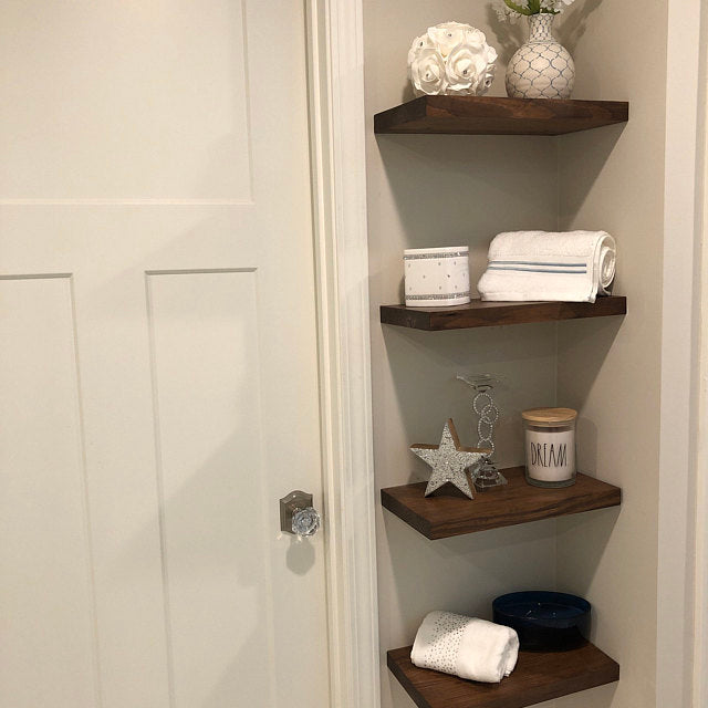 This durable design is constructed from locally sourced pine wood and is created using dowel rods and a bracket made from the shelf. All edges will be smooth finished, but some pine wood characteristics will still be present such as knots, uneven grain patterns, small cracks, etc. We personally believe that this adds character to the shelves, but understand it may not fit the aesthetic you're looking for. Please keep this in mind as you are making your purchase.